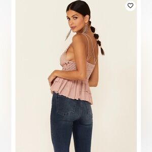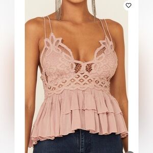 NWT Free People Women’s Adella Lace Ruffled Cami Top Mauve Size Small