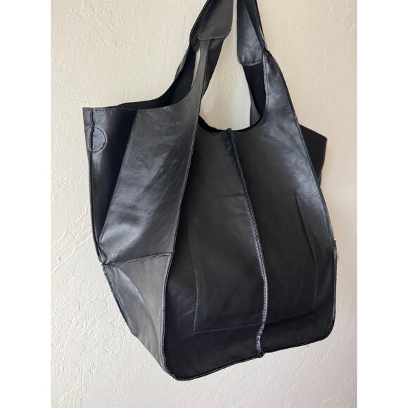 NWOT Large Black Faux Leather Shoulder Bag