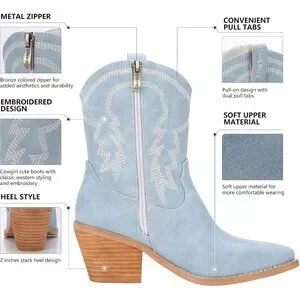 Versatile: The ankle boots can be paired with jeans or dresses for a western flair to any outfit. These cowboy boots have no age limit and can be worn by all ages. You can give it as a gift to your friends as well as elders because it really fits!