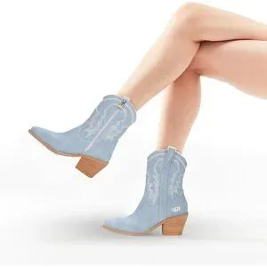 ⚡Women's Light Blue Ankle Boot Embroidered Comfy Fashion Vintage Boot Wide Calf