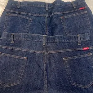 Lot of 2 Classic blue denim jeans with orange stitching. Perfect for casual wear.