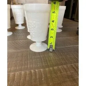 Vintage footed milk glass goblet cups with grapes and vine design