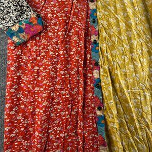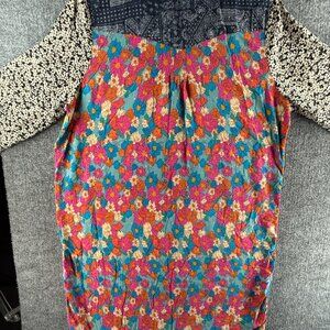 Natural Life Floral Button Up Dress Large Colorful Boho Long Sleeve Rayon Women