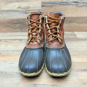 LL Bean Women Size 9 Brown Leather Boots 6" Padded Collar Hunting Duck Boot