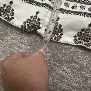 Color/Pattern: White with black botanical floral block print in horizontal stripes