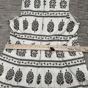 Anthropologie Dress Womens 16 White Black Sleeveless A-Line Midi Floral Zip Back