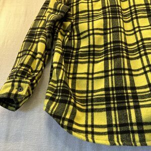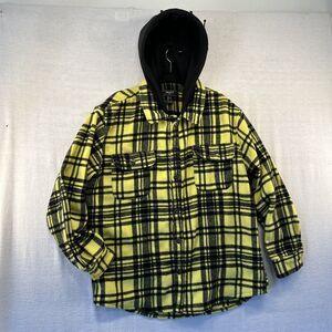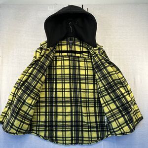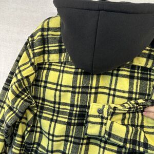 Forever 21 Men Yellow Black Plaid Hooded Flannel Shirt Jacket Size L Pockets