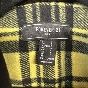 Forever 21 Men Yellow Black Plaid Hooded Flannel Shirt Jacket Size L Pockets. Condition is Pre-owned - Good. Shipped with USPS Ground Advantage.