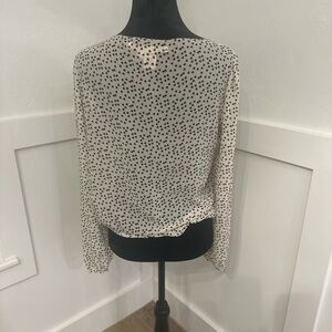 Max Studio Cream and Black Patterned V-Neck Blouse