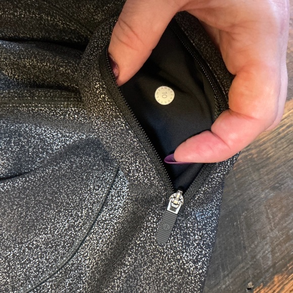 Black Shimmer – sleek sparkle finish, high-rise waistband with hidden pocket