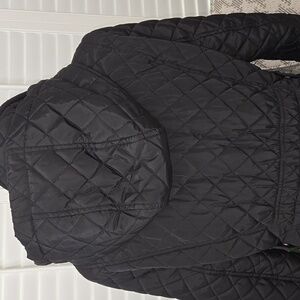 EUC! Stay warm and stylish with this women's quilted black hooded jacket. Perfect for chilly days, this jacket combines comfort and elegance.