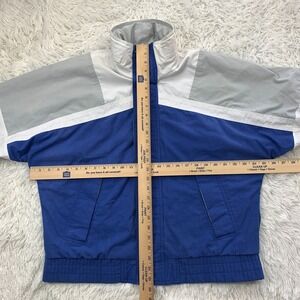 Vintage Fox Collection Jacket Blue Gray White Full Zip Hooded Retro Colorblock