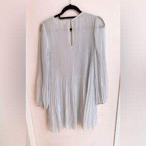 In this dreamy Wilfred signature. This is a longsleeve mini dress with sheer sleeves and accordion pleats throughout. It’s made with Fête Chiffon — lightweight, semi-sheer fabric with an ethereal drape.