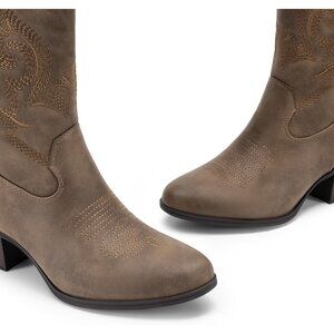 ⚡Women's Camel Mid Calf Cowgirl Boots With Embroidery Round Toe Western