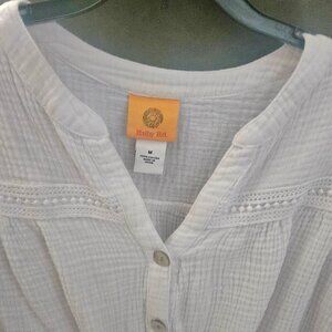 Ruby red Soft boho 100% cotton White crinkle front tie Vneck top M