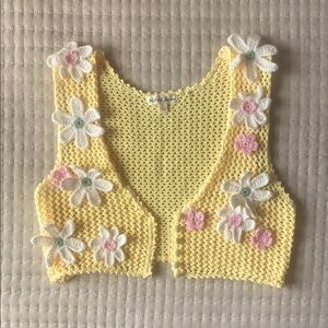 Features adorable crocheted flowers. Fully functioning buttons. Perfect for summer. New without tags.