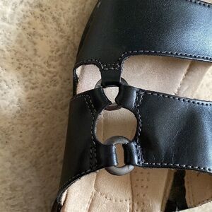 Earth Spirit Lissa Black Leather Comfort Slip On Sandals Womens Beach Size 9
