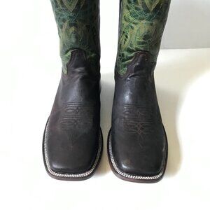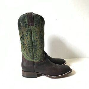 NEW Planet Cowboy Dig It Boots Mens 10.5 EE Brown Green Leather Square Toe NWOB