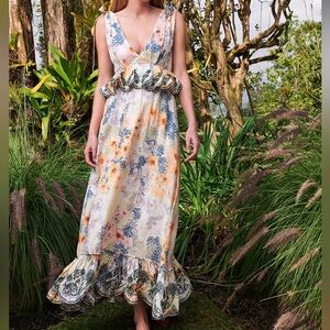 Make every day a special occasion with the Agua by Agua Bendita 'Infinito Florecer' maxi dress. Lovely ruffled hem, striking bows adorning the shoulders, and concealed zip fastening along the back. NWT Excellent condition, size medium.