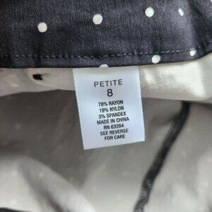 ROZ & ALI presents Women's Black Spandex Polka Dot Pant in size 8P. Classic fit ankle pedal pusher style, perfect for every stylish woman.