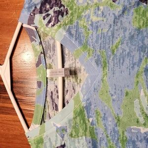 Elegant women's blouse featuring a floral print in shades of blue and green. Perfect for adding a touch of color to your wardrobe.