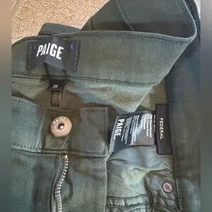 Paige Transcend Federal Slim Straight Jean Vintage Pine Green Colored Pants - 36