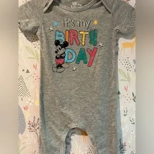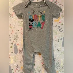 Disney Baby Mickey Mouse “It’s My Birthday” One Piece Romper Size 12 Months. Super soft and cute for a first birthday!