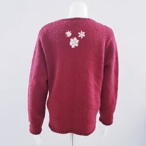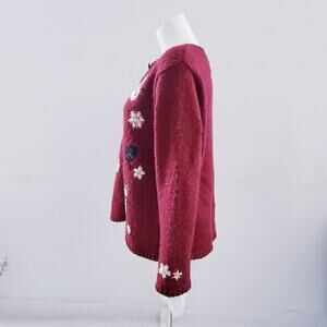 Croft & Barrow Women's Holiday Sweater - Petite/Large - Silk/wool/acrylic/nylon blend, button front with decorative stitching around neck and all edges, hand washable, color is cranberry