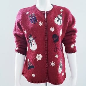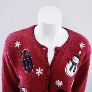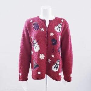 Croft & Barrow Women's Holiday Snowman Red Christmas Sweater Petite Large
