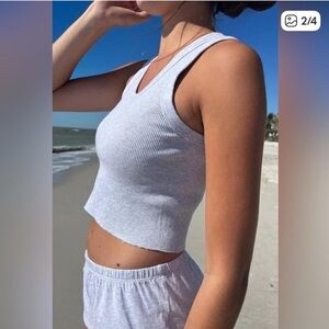 brandy melville grey connor tank ribbed cotton crop top π©·π«¦πͺ½π«β¨ ο½(^Π·^)-β‘ΰΏ