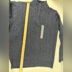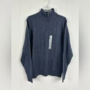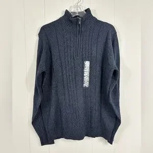 NWT Oscar De La Renta Mens Sz L Blue Preppy Academia 1/4 Zip Ribbed Knit Sweater