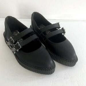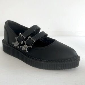 T.U.K. Footwear Black Women Platform Mary Jane 2 Strap Skull Buckle Shoes Size 6