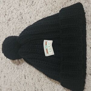 Gucci Black Wool Puff Beanie Winter Cap Hat Sz. S (stretchy). the Gucci tag is not attached on one side but otherwise still IN GREAT CONDITION!