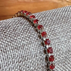 This listing is for one garnet colored cz bracelet only! Any other bracelets or jewelry shown in the photos is for reference and styling tips only!