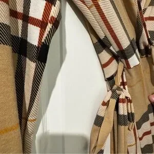 Stylish plaid dress with long sleeves and a belted waist, slit in back. Perfect for any occasion.