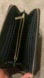 Chic black wallet with sparkling rhinestones. Gold logo and zipper detail.
