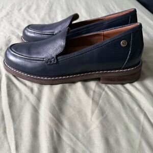 Elegant dark blue loafers by Easy Spirit. Comfortable slip-on design. Ideal for versatile wear.