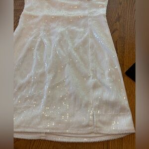 Lulus NWT Glowing Intentions White Sequin Bustier Tie-strap Mini Dress - Size S