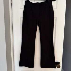 Perfect for any occasion, the popular mid-rise kick pant is in a refined black with comfortable bi-stretch fabric that conforms and moves with your curves. Slight flare leg.