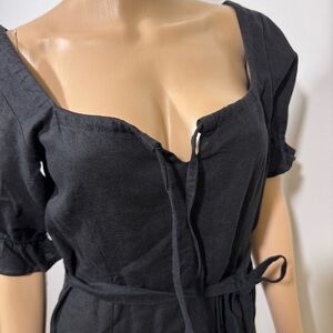 With Jean Black Linen Juliette Mini Dress Women's Small Cottagecore Milkmaid