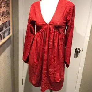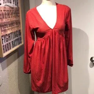 NWT LITTLE RED AND WHITE POLKA DOT MINI DRESS BY SACRED THREADS SLEEK SEXY CAN BE WORN AS A TUNIC ALSO VNECK POLYESTER FABRIC