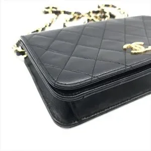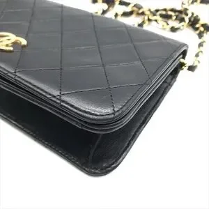 Authentic CHANEL 1988 Vintage classic flap black lambskin leather 24k gold bag