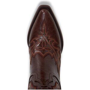 🆕Women Chestnut Brown Faux Leather Wood Embroidered Chunky Heel Cowgirl Boots