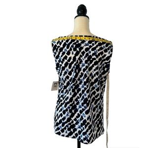 Description: Ultramarine Chic Ink Multi V-Neck Sleeveless Tank Top by Anne Klein. Blue and white animal print like pattern. Looks great with a navy or white skirt or trousers. Works well on its own or under a blazer. Comes from a smoke free home.