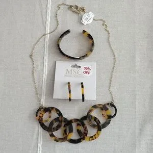 Earrings, Necklace, Bracelet Set By Mainstreet Collection NWT Animal Print Round