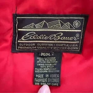 Vintage 90s Eddie Bauer Goose Down Red Snow Insulated Heavy Hooded Jacket Medium