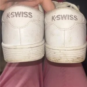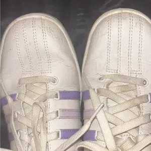 Stylish K-Swiss sneakers with white base and lavender stripes. I will clean them before shipping!