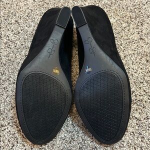 Jessica Simpson Black Suede Cash Solid Slip On Wedge Heels size 8.5