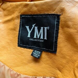 Stylish yellow gold leather jacket with zipper details. Great pop of color! Perfect for a bold look. 💛
