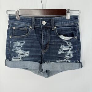 American Eagle Hi-Rise Dark Distressed Denim Shorts Size 2 Casual Fall Layering